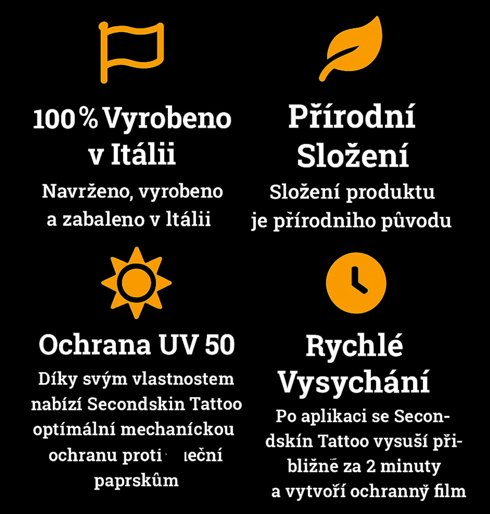 Second Skin Tattoo Care lze použít jak tatérem přímo po dokončení tetování, tak i klientem doma v průběhu hojení.